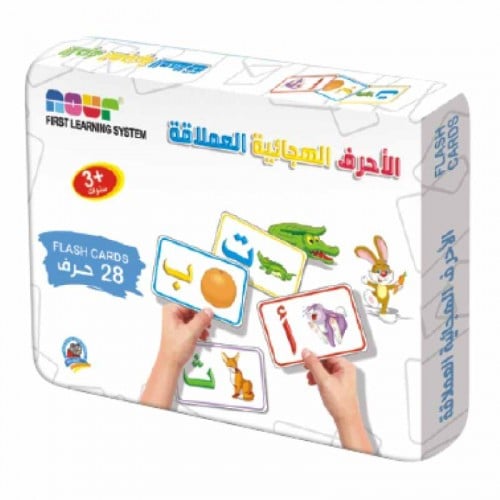 باستخدام هذه البطاقات العملاقة الملونة والمرسوم على طرفيها بإمكانك أن تساعد طفلك في تعلم الأحرف الهجائية العربية كي يتمكن من قراءة وتهجئة كلماتها الأولى.